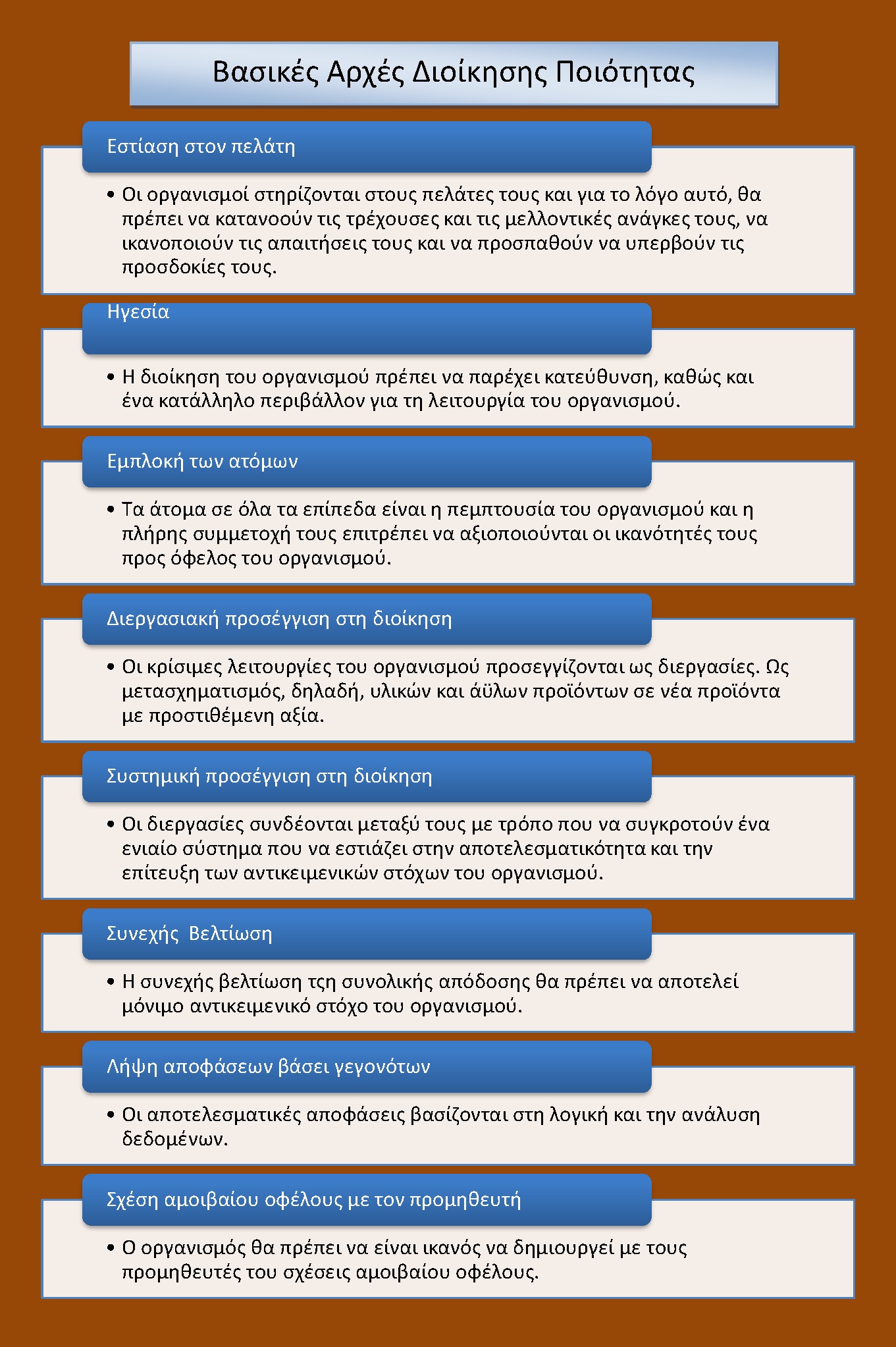 Η ποιότητα εδώ και πολλά χρόνια αναγνωρίζεται διεθνώς ως ένας δυναμικός παράγοντας για την ανάπτυξη των επιχειρήσεων. Αποτελεί σημαντικό εργαλείο για την δημιουργία ανταγωνιστικών προϊόντων και υπηρεσιών. Στη χώρα μας, η διοίκηση της ποιότητας ως λειτουργία της επιχείρησης, κερδίζει πλέον ευρύτερα την θέση που της ανήκει στην παραγωγική διαδικασία.